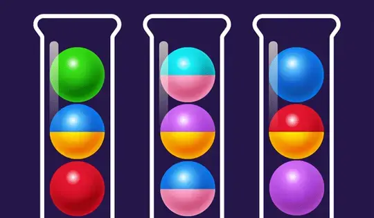 Sort the balls into vials of matching colors. Click on a vial to lift the top ball. Then, click on another vial to transfer the ball. You can only move a ball into another vial if it matches the top ball's color in that vial. Each vial can only hold up to four balls. To complete the level, fill the vials with balls of ONE color. Balls with two colors don't need to be sorted, so just use them to move the balls around.