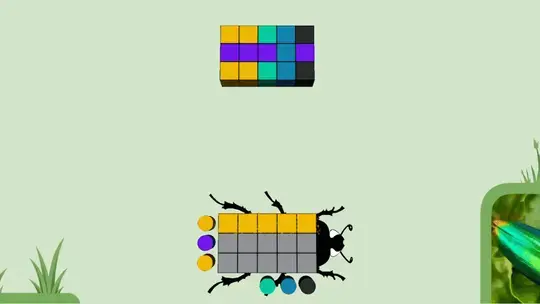 ¡Tu objetivo es usar los colores para que coincidan con el caparazón de cada escarabajo! En la parte superior de la pantalla habrá una cuadrícula que muestra un patrón de colores. ¡Debes usar los colores disponibles para que coincidan con el caparazón del escarabajo! ¡Presiona el botón de cada color para pintar el caparazón!