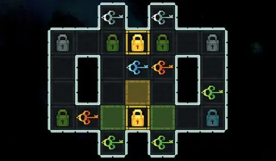 Nei livelli successivi, alcune tessere verranno evidenziate in un determinato colore. Ciò significa che solo le chiavi di quel colore possono passare attraverso quella tessera.