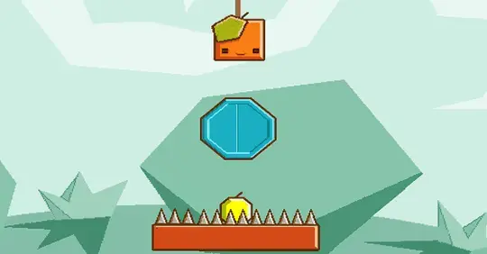 Fare clic e trascinare il mouse su una corda, quindi rilasciare per tagliare la corda. Ogni volta che l'arancia tocca un nuovo blocco, si attaccherà al blocco.