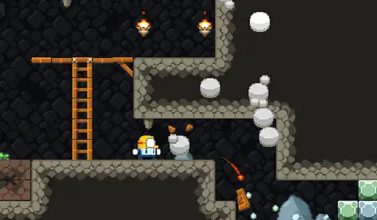 矢印キーを使用して移動します。上を押すとジャンプします。それを見つけたら、スペースを押してダイナマイトの棒を落とします。それを使用して岩を爆破し、出口への道を空けます。