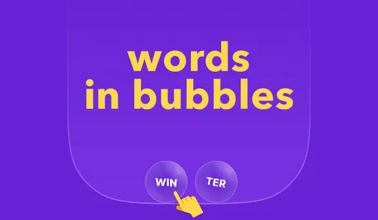 画面上部のテーマに合う単語をすべて考え出してください。画面下部にある、文字がいくつか入ったバブルをタップして単語を作りましょう。それぞれのバブルは1つの単語にしか使えません。答えを作ると、選んだバブルがはじけて単語が現れます。
