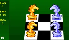 December 31, 1998A classic logic game. You have four knights on a small board and just have to switch the position of the two colors. Can you do it in as few moves as possible?