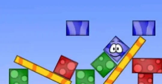 Toque o haga clic en otros objetos para eliminarlos. ¡No dejes que tu bloque azul toque el suelo!