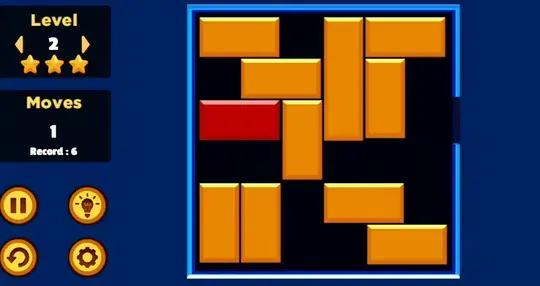 Intenta liberar el bloque rojo en la menor cantidad de movimientos posible para ganar la máxima cantidad de estrellas en el juego desbloqueado. Si estás atascado, haz clic en la bombilla para seguir una guía paso a paso sobre cómo resolver el nivel.