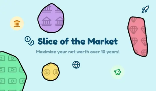 各投資先に投資した金額は、図形で表されます。投資額が増えるほど、図形は大きくなります。利益を最大化するには、お小遣いから様々な投資先へ、また投資先間で資金を移動させる必要があります。