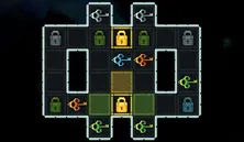 脱出経路を構築します。タイルをつかんで壊れた経路を再構築し、安全に出口までたどり着けるようにします。